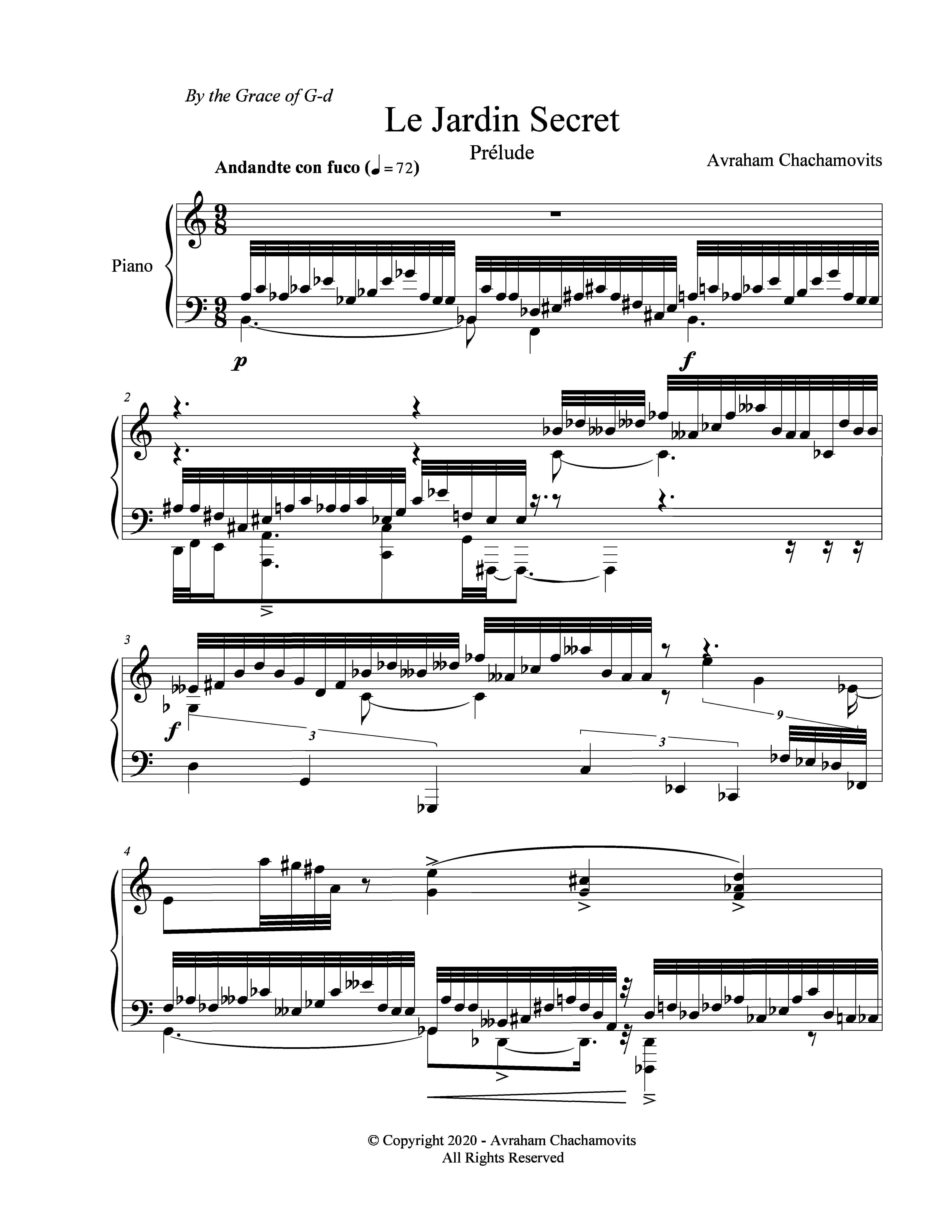 Originally composed in 2012, this great piano suite is has five movements. Its modernistic character is marked by the shifting half-tonal/rational and half-atonal/intuitive harmonies, and a brilliant modern-counterpuntal style, all unleashing very powerful forces. Truly an inspired work, it is considered by the composer as one of his most important works.
